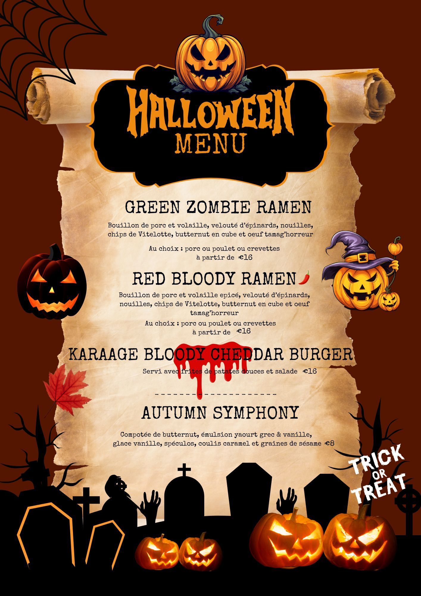 Nos plats sont disponibles à l'unité ou en menu.