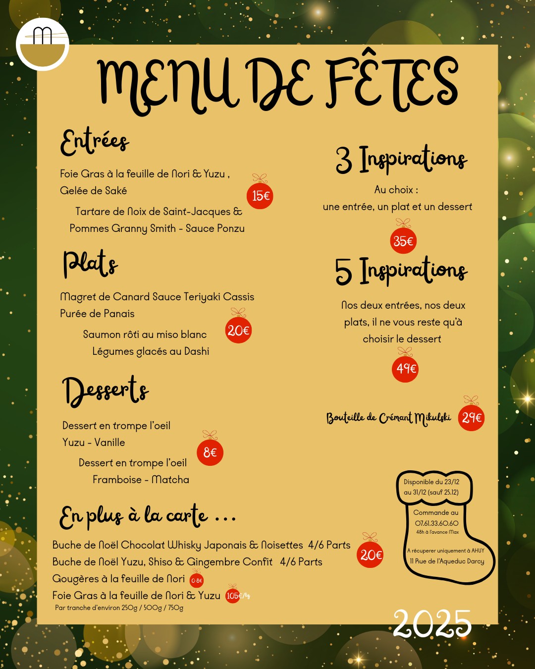 Menu de fêtes à emporter